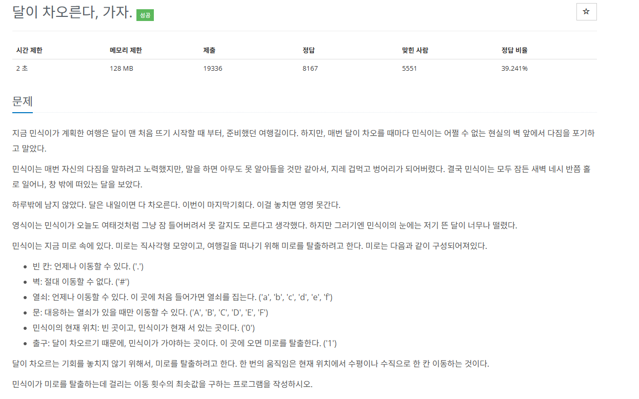 - 이동하려는 칸이 문(A-F)라면 해당 문을 열 수 있는 열쇠를 가지고 있는지 확인합니다.