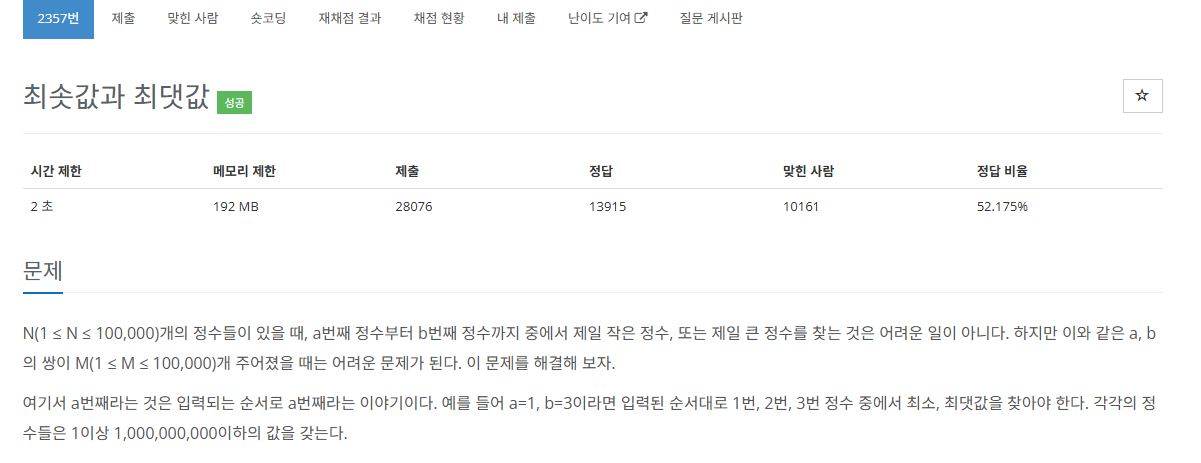 https://www.acmicpc.net/problem/2357