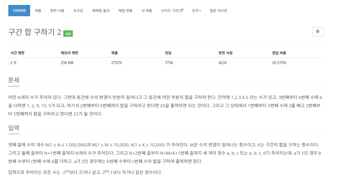 - 이후 M + K개의 연산을 처리하며, 플래그 값에 따라 업데이트 또는 쿼리를 실행한다.