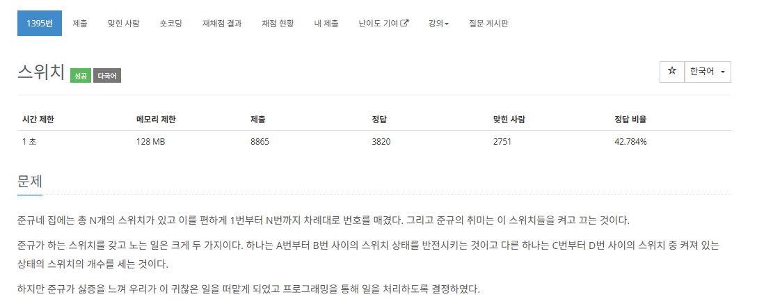 이 문제는 세그먼트 자료구조를 이용하여 풀어아 되는 문제이다.