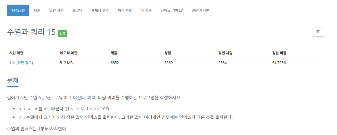 - 명령 1: 배열의 특정 인덱스를 주어진 값으로 갱신합니다.