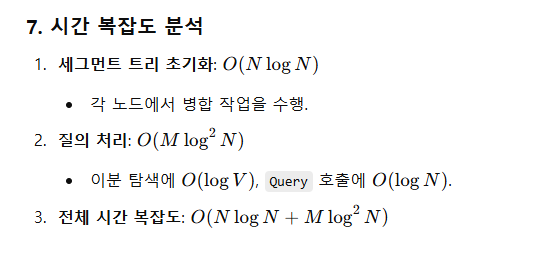 - tree[node]는 왼쪽 자식과 오른쪽 자식의 정렬된 값을 병합(merge)한 결과입니다.