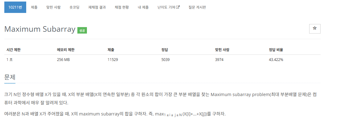 이 함수는 주어진 N개의 정수 배열에서 연속 부분 수열의 최대 합을 계산하는 역할을 합니다.