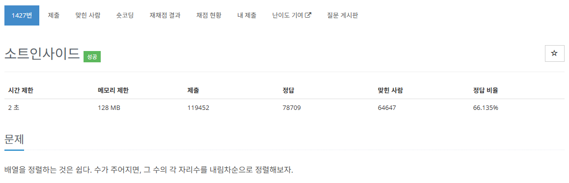 https://www.acmicpc.net/problem/1427