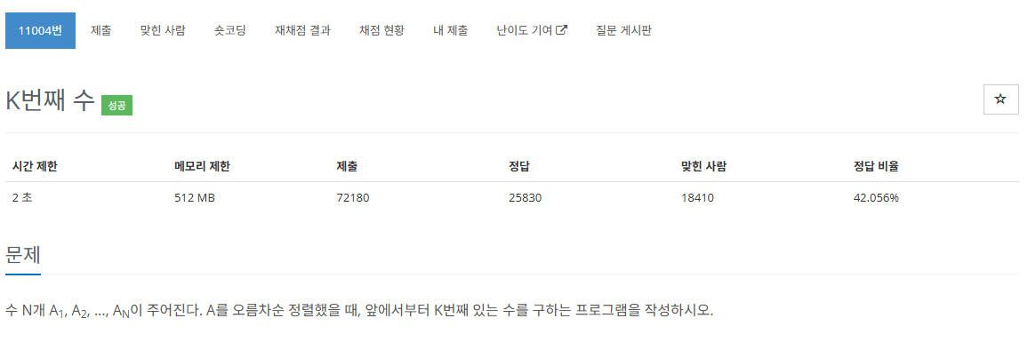 - N은 배열의 크기, K는 구하고자 하는 K번째 작은 수의 위치입니다.