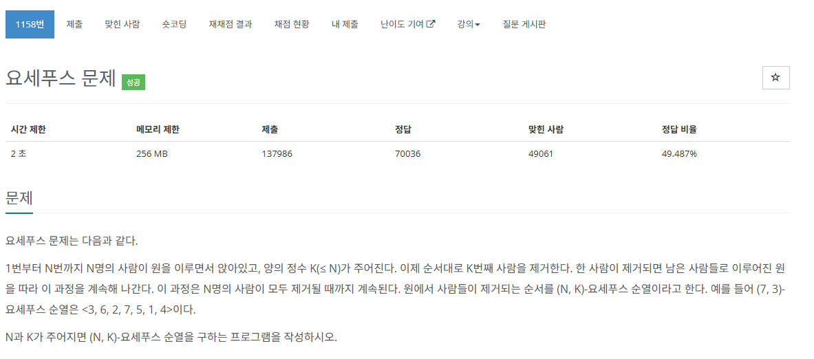 https://www.acmicpc.net/problem/1158