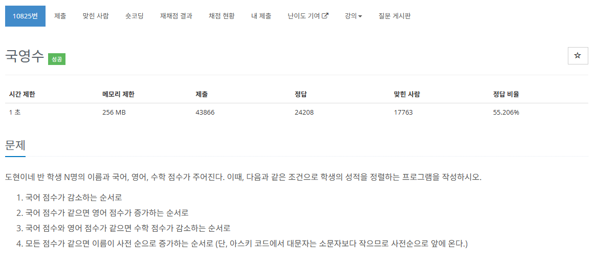 https://www.acmicpc.net/problem/10825
