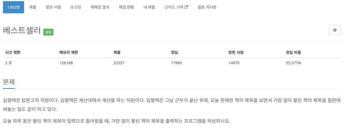 https://www.acmicpc.net/problem/1302