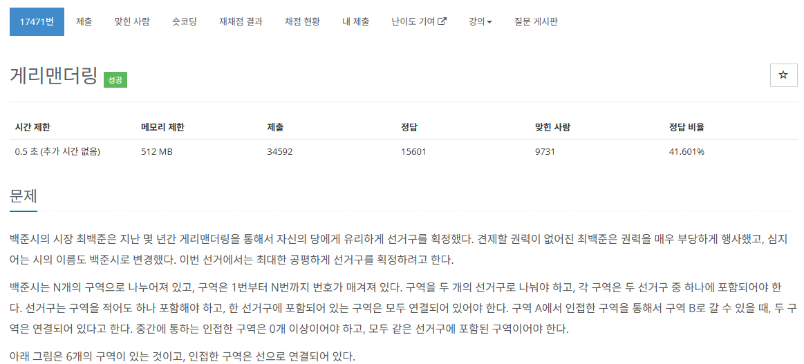 - BFS가 종료되면, 실제로 방문한 구역 수(cnt)가 선거구의 전체 구역 수(area.size())와 같으면